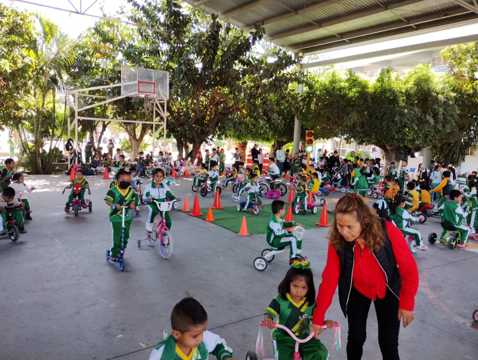 Por otro lado, los alumnos de preescolar y primaria adquirieron conocimientos sobre señalética y reglas viales, participando además en una actividad lúdica de interacción en un circuito vial infantil dinámico.