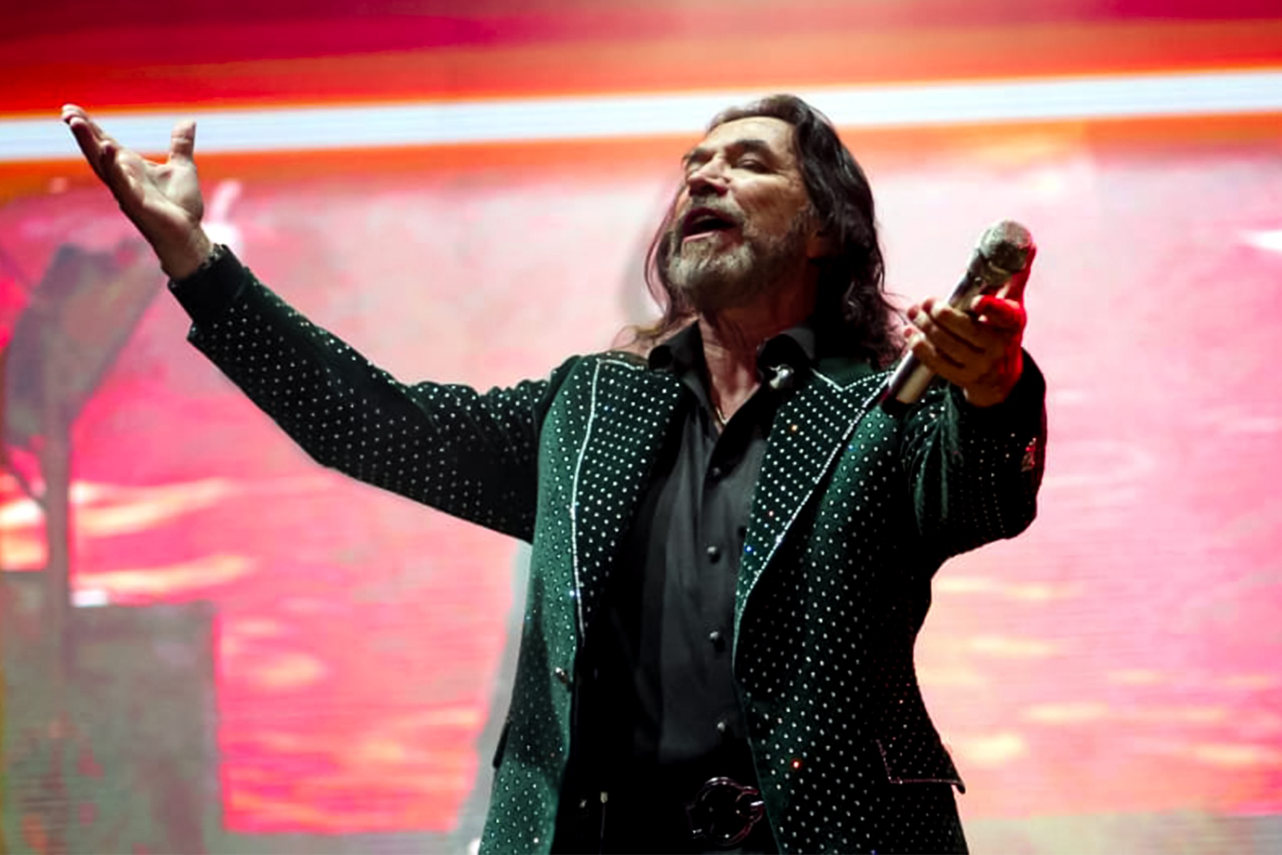 Ante una multitud de más de 25 mil espectadores, el artista ofreció un emotivo recorrido por su historia musical de más de cuatro décadas de trayectoria. Desde el primer acorde de «Se va muriendo mi alma», el ambiente se llenó de nostalgia y emoción.