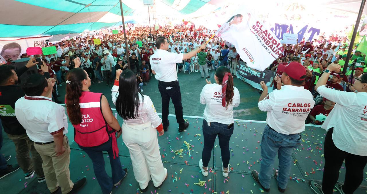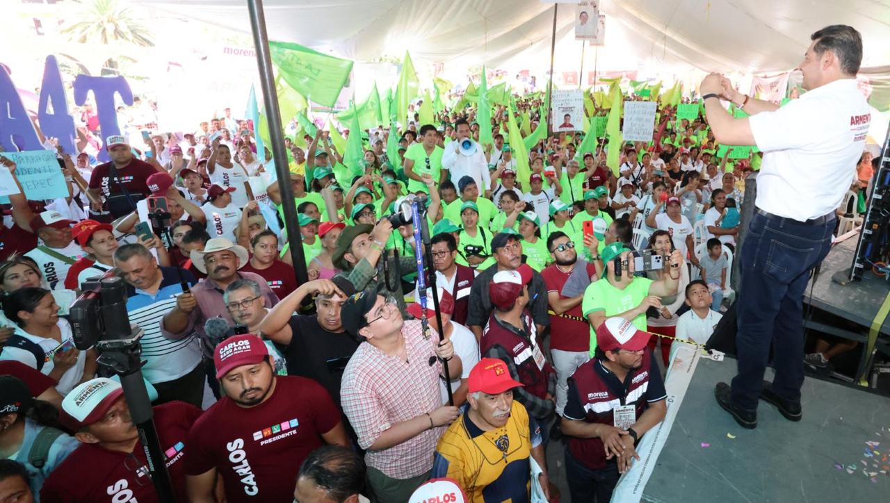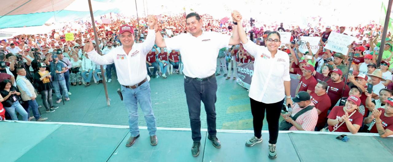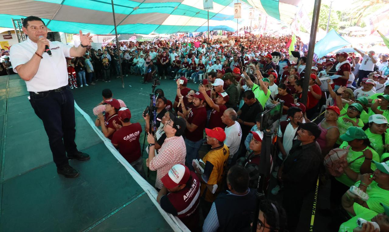 Xicotepec de Juárez, Puebla. Ante más de 4 mil personas en la recta final de su campaña, el candidato de la Megacoalición «Sigamos Haciendo Historia» Alejandro Armenta reconoció el potencial económico de la Sierra Norte de Puebla, mencionó que el estado debe convertirse por el bien de los micro, pequeños y medianos empresarios en proveedor de mercancías para los países de Europa, Asía y las Américas que serán trasladadas por el tren interoceánico