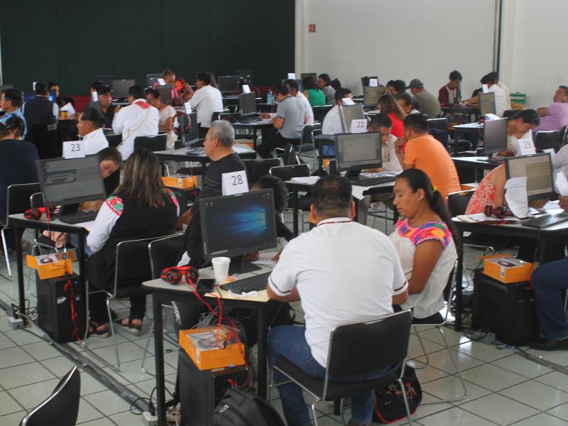 Como parte de estas actividades, 695 docentes presentaron una prueba de conocimientos y aptitudes donde desarrollaron sus habilidades lingüísticas, esto en el auditorio “José María Morelos y Pavón” de las oficinas centrales de la dependencia. Dicha valoración fue para profesores que aspiren a ocupar una plaza docente bajo el dominio de alguna de las siete lenguas originarias (náhuatl, tutunakú, otomí, popoloca, Tepehua, mixteco y mazateco), únicamente para los niveles de preescolar y primaria indígena.