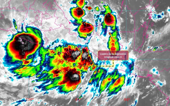 CIUDAD DE PUEBLA, Pue.– Ante las condiciones meteorológicas que prevalecen en la entidad, la Coordinación General de Protección Civil y Gestión del Riesgo de Desastres informa que el Servicio Meteorológico Nacional (SMN) ha ubicado la depresión tropical “Once-E” a 75 kilómetros al oeste-suroeste de Barra de Tonalá, Chiapas, y a 85 kilómetros al sureste de Salina Cruz, Oaxaca. Sus remanentes, en interacción con la vaguada monzónica y una zona de baja presión al suroeste del Golfo de México, provocarán lluvias puntualmente muy fuertes en Puebla.