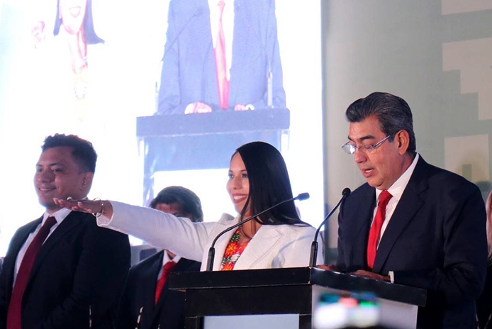 En compañía del gobernador de Puebla, Sergio Salomón Céspedes Peregrina, Tonantzin Fernández Díaz rindió protesta como presidenta municipal constitucional de San Pedro Cholula, para el periodo 2024-2027.