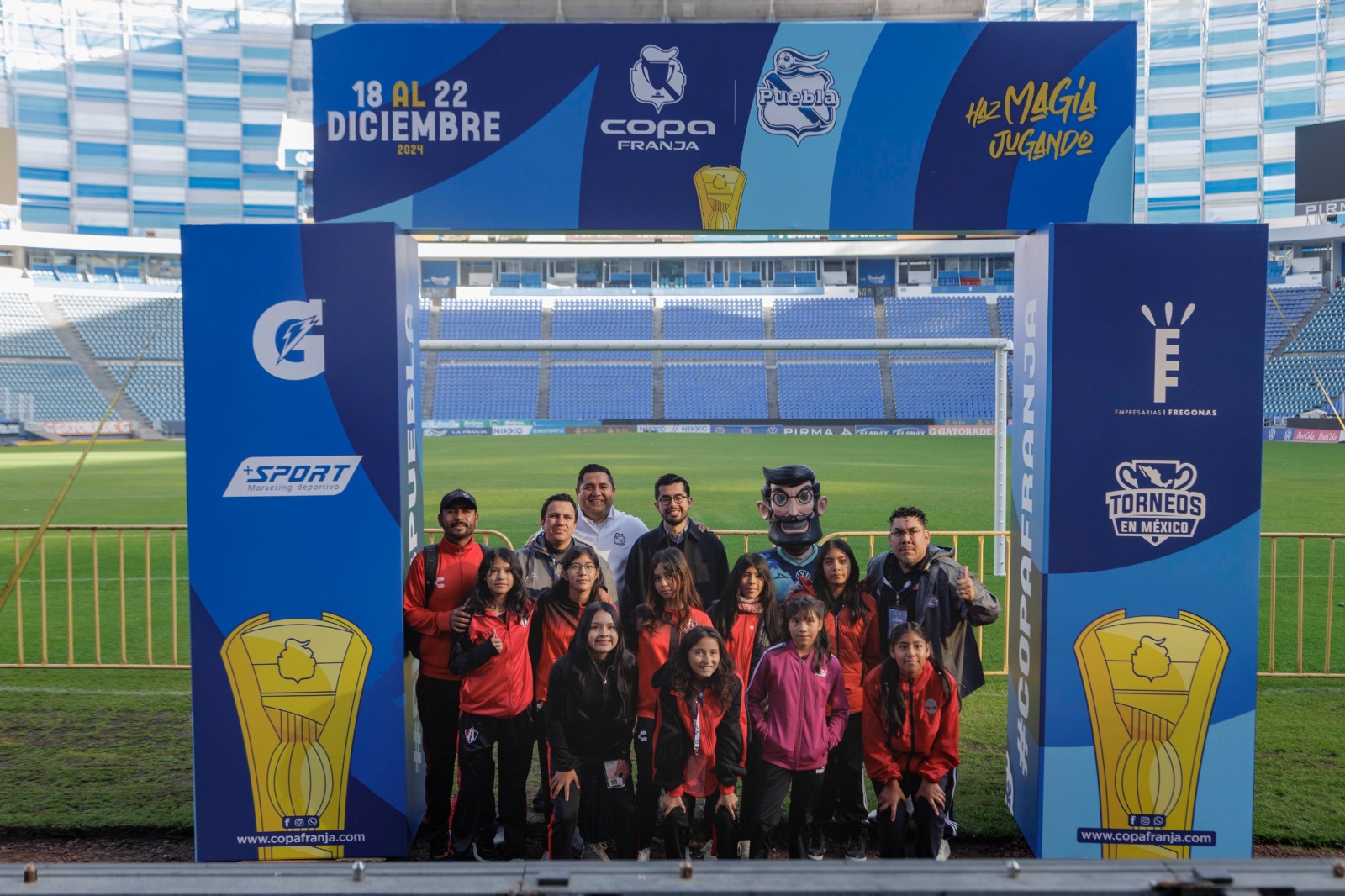 Puebla, Pue.- La Copa Franja, uno de los torneos de fútbol infantil y juvenil más importante del país, que reúne a 14 mil personas entre niñas, niños, jóvenes, padres e instructores, llegó a la ciudad de Puebla para hacer deporte, conocer los atractivos que ofrece para familias, turistas y visitantes, y generar una derrama económica de más de 45 millones de pesos, del 18 al 23 de diciembre próximos, resaltó el secretario de Economía y Turismo, Jaime Oropeza Casas.