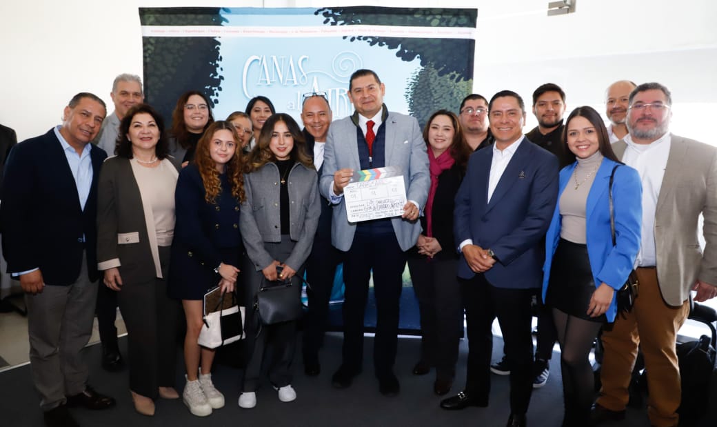 CIUDAD DE PUEBLA, Puebla.- El gobernador del Estado, Alejandro Armenta dio el primer claquetazo de la producción de la película animada “Canas al Aire”, que proyecta a nivel internacional la riqueza cultural de los pueblos mágicos y milenarios de la entidad y revalora el papel de las mujeres adultas mayores a través de la animación.