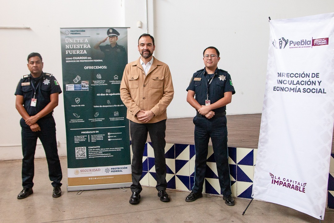 Puebla, Pue.- Para facilitar la vinculación laboral a poblanas y poblanos, la Secretaría de Economía y Turismo en coordinación con la Secretaría de Seguridad y Protección Ciudadana (SSPC) del Gobierno de México, iniciaron las jornadas del Reclutamiento Masivo de Protección Federal, a través de la Bolsa de Trabajo municipal.