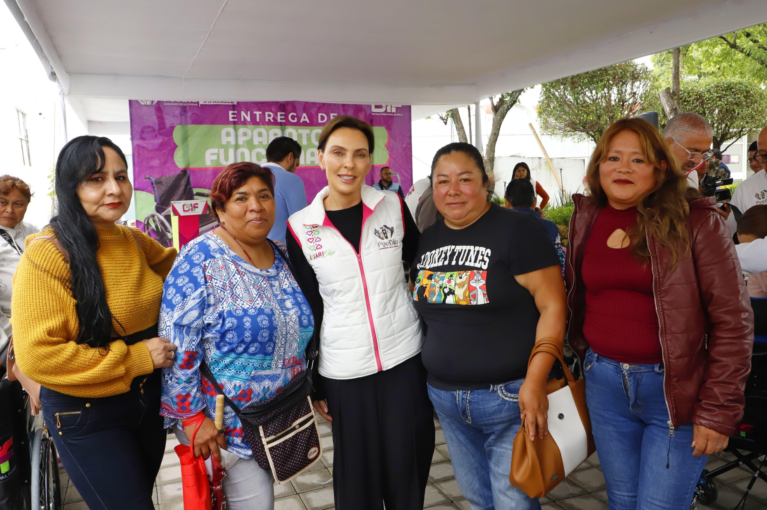 Puebla, Pue.- Como parte de las acciones orientadas a mejorar la calidad de vida de personas en situación de vulnerabilidad, la presidenta del Patronato del DIF Puebla Capital, MariElise Budib, encabezó la séptima entrega de aparatos funcionales, reafirmando el compromiso asumido desde el inicio de esta administración con quienes más lo necesitan en la capital poblana.