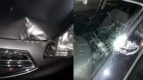 Señaló que su vehículo sufrió daños como consecuencia del impacto de las piedras, pero él salió ileso.