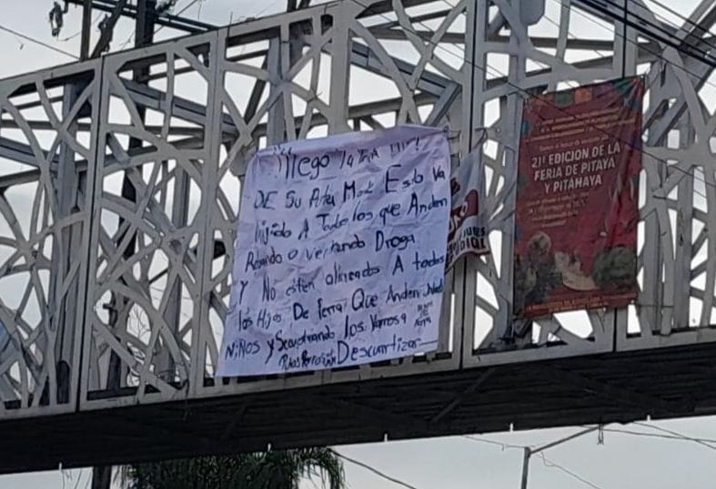 El mensaje de la lona está dirigido a personas que se dedican a delinquir o a la venta de drogas en la zona.