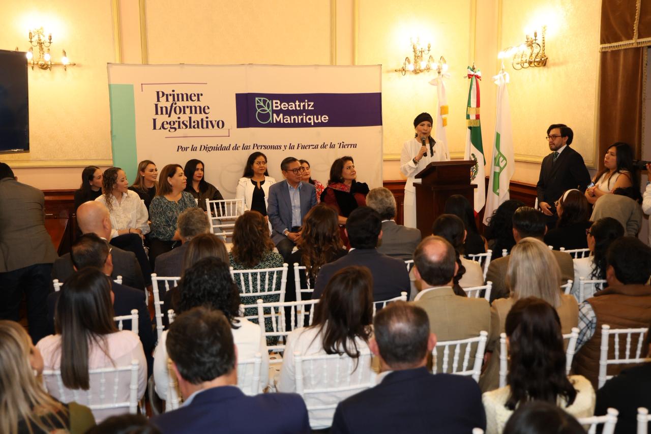 La diputada local, Beatriz Manrique Guevara, presentó su Primer Informe Legislativo donde reiteró su compromiso de servir a las y los poblanos, no solo en la modernización de la legislación en Puebla, sino en buscar un equilibrio entre leyes modernas y más humanas, con el objetivo de lograr una Puebla más justa, sustentable y sostenible.