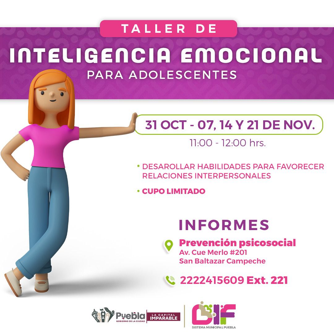 Puebla, Pue. – Preocupados y ocupados en la salud mental de las y los jóvenes, bajo la instrucción de la presidenta del Patronato del DIF Puebla Capital, MariElise Budib, se llevará a cabo el taller “Inteligencia Emocional en los Adolescentes”, para desarrollar habilidades de manejo de emociones mediante el reconocimiento, la gestión y la expresión adecuada de las mismas. Con la intención de fortalecer el equilibrio emocional y las relaciones interpersonales, promoviendo su bienestar integral para una sana convivencia, respetuosa y consciente.