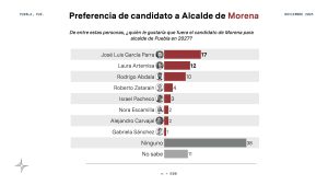 A poco más de un año de que inicie el proceso interno de selección de candidatos en Morena, García Parra se coloca a la cabeza de las preferencias, seguido por Laura Artemisa García Chávez (12%) y Rodrigo Abdala D’Artigues (10%). En posiciones más bajas figuran Roberto Zatarain, Alejandro Carvajal, Israel Pacheco y Nora Merino.