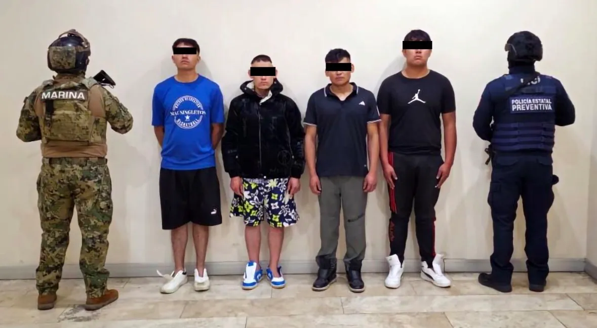 Los detenidos fueron identificados como Jesús Alberto N. de 19 años; Fernando N., alias “El F”, de 21 años; Roberto Carlos N. de 23 años y Christian N., alias “El Güero”, de 31 años, provenientes del Chicoloapan Estado de México y de la Ciudad de México.